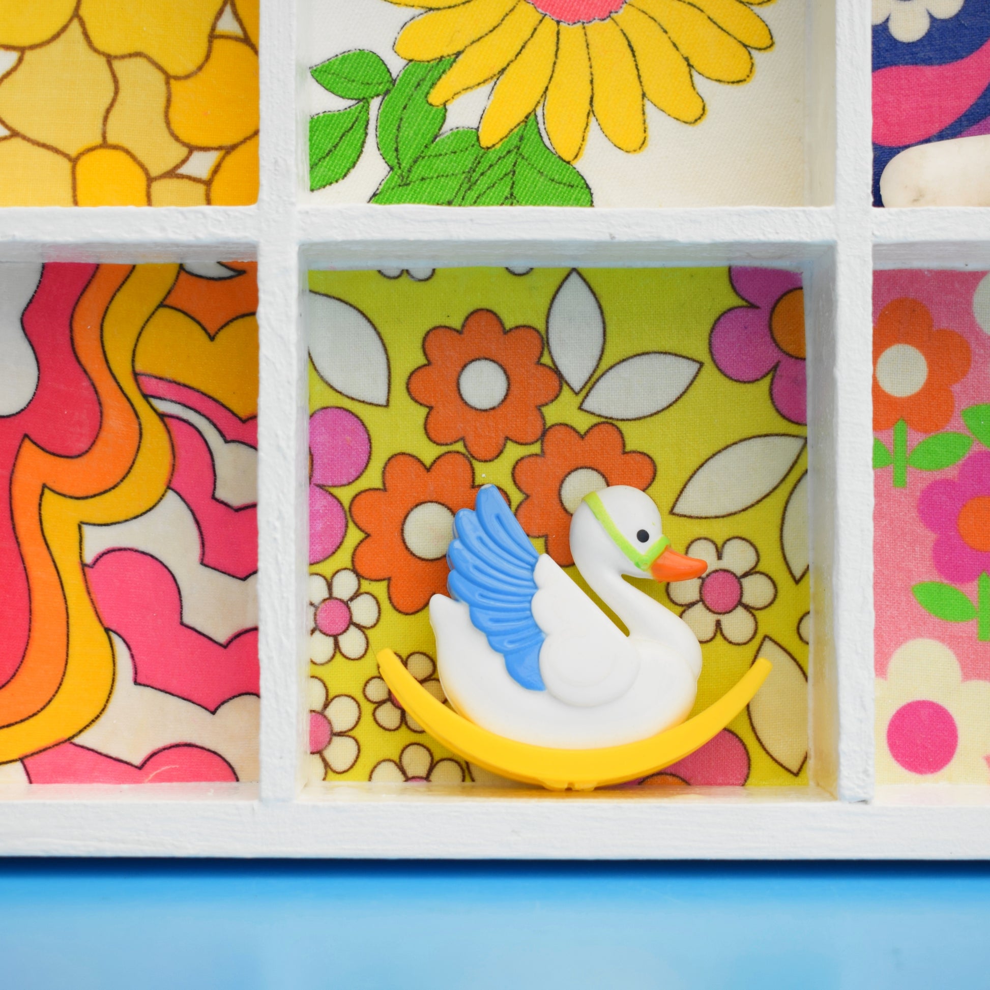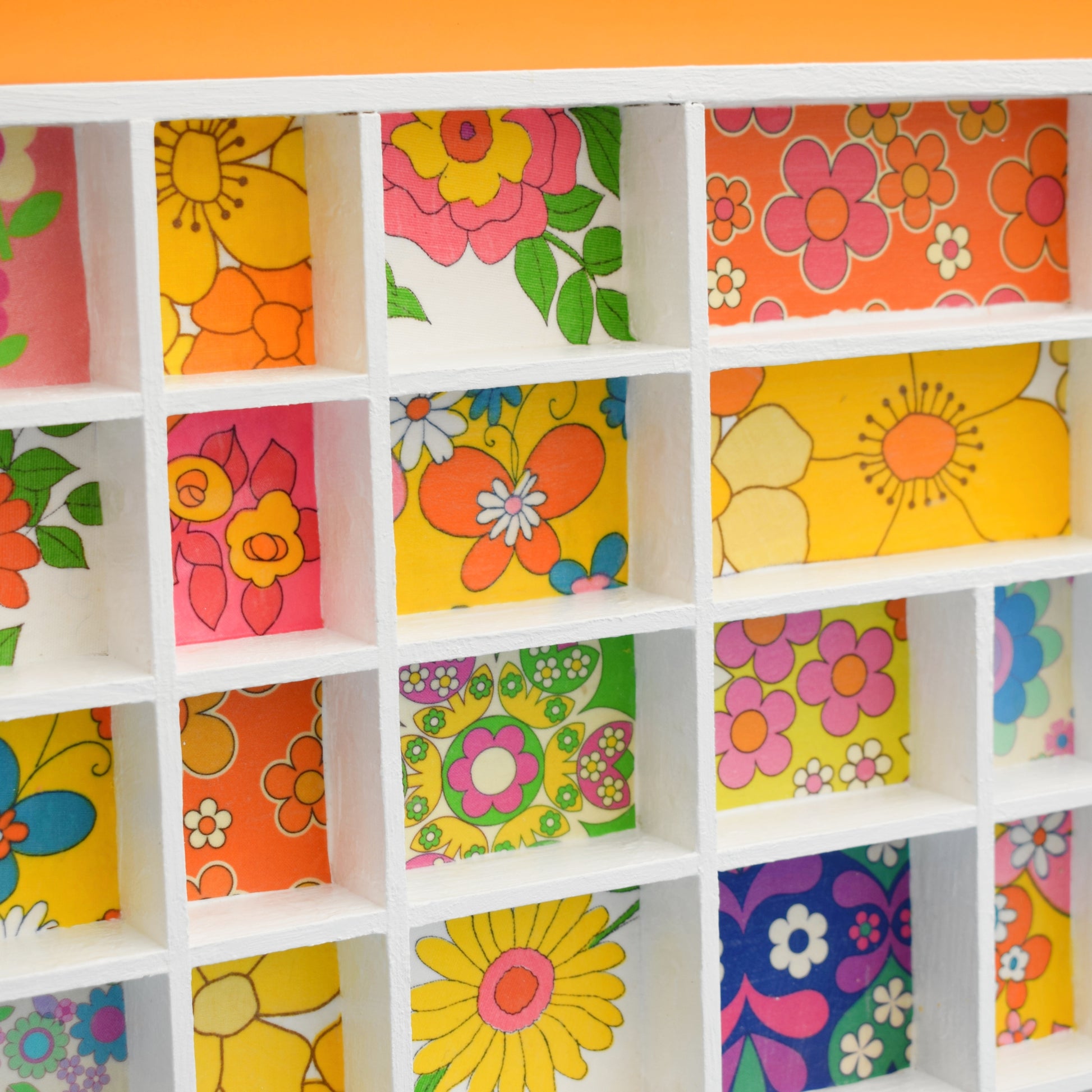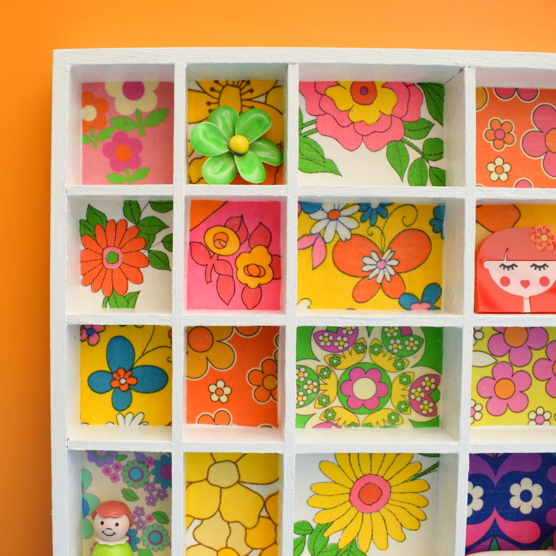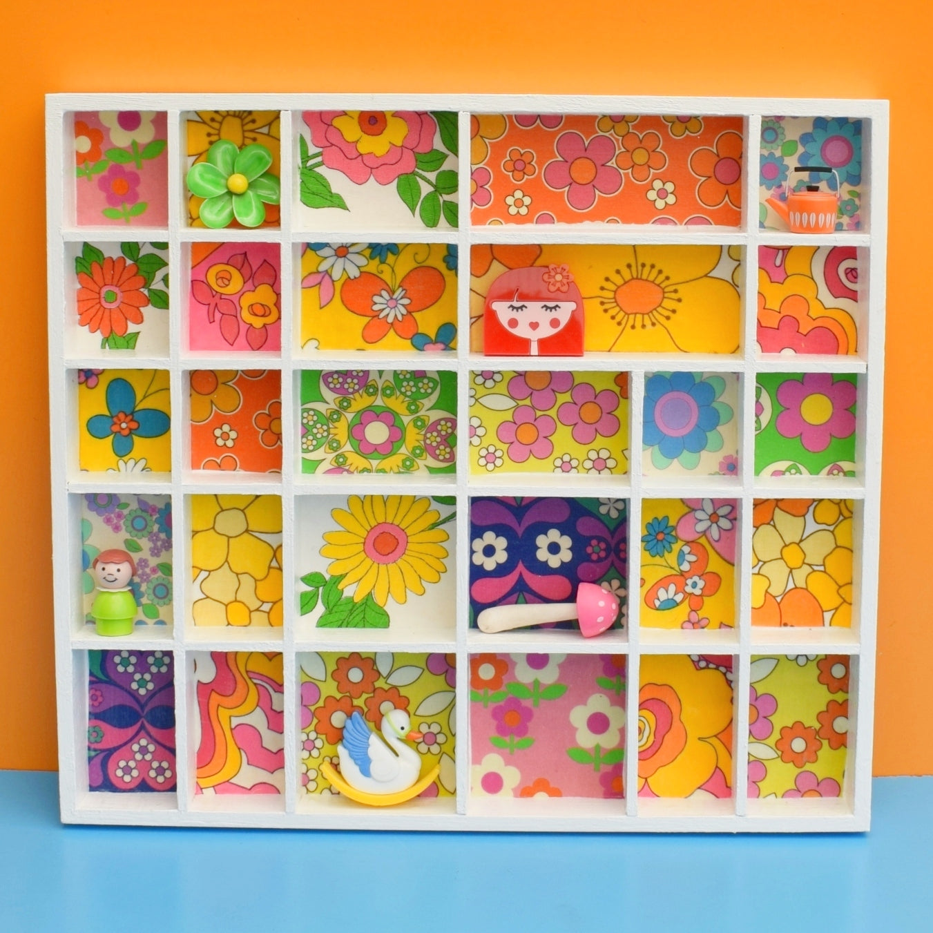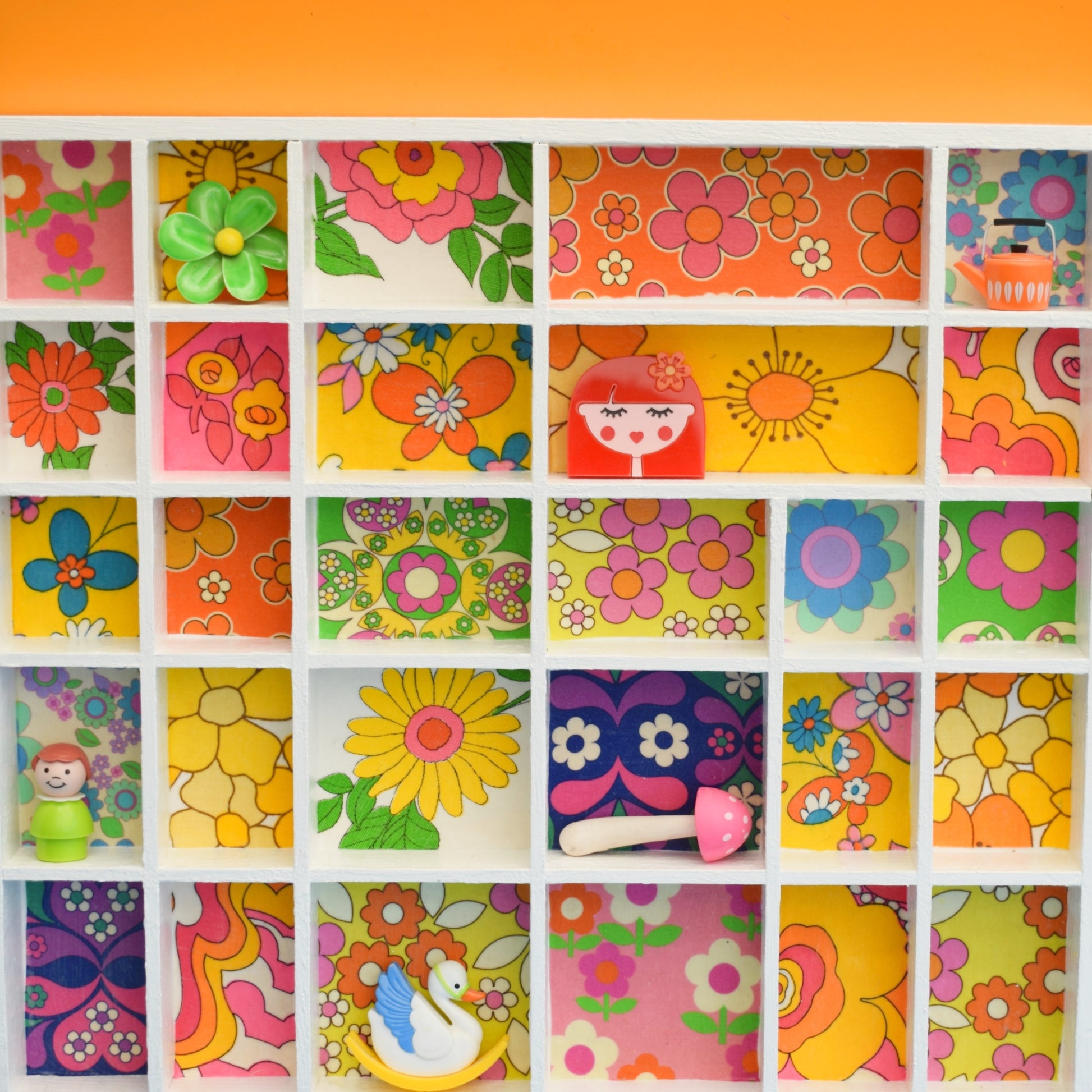 Vintage Retro Larger Wooden Display Unit - Wallpapered - Alice Apple