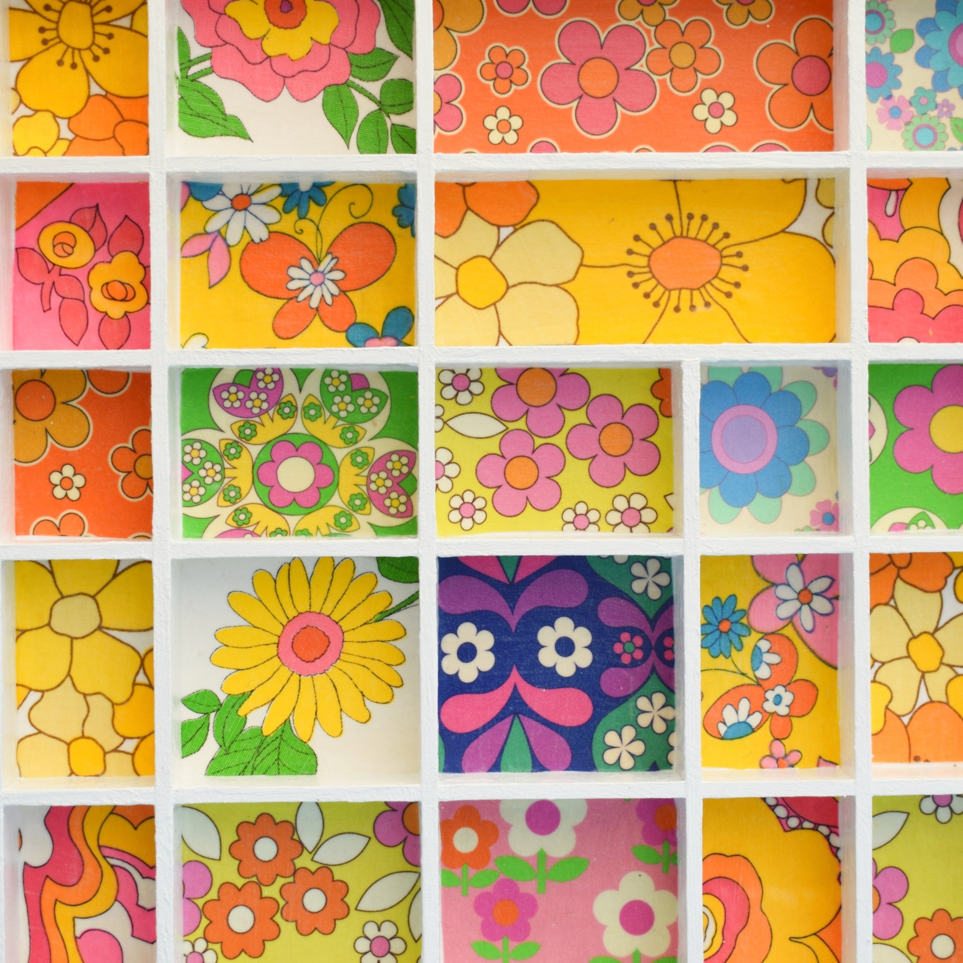 I have updated it with scraps of mostly vintage fabric, mixed with modern Alice Apple fabric pieces too. All sealed to make it more durable. An unusual alternative to the vintage wallpaper i often work with