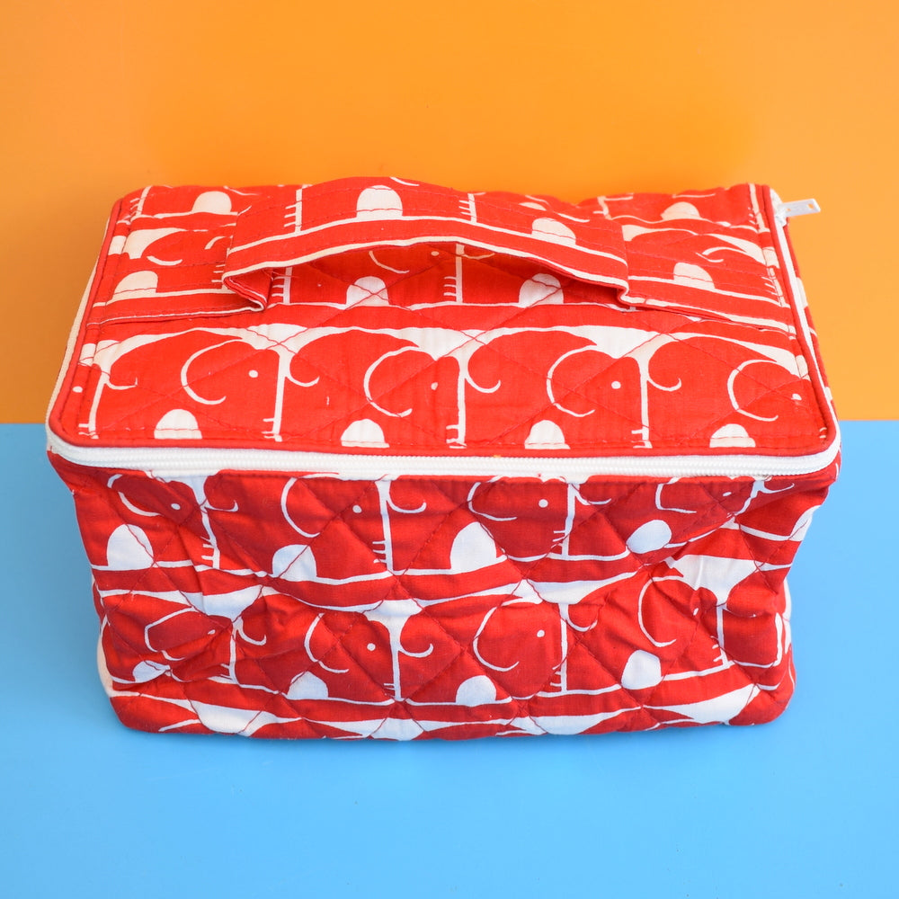 Vintage 1980s Wash Bag / Storage Bag - Elephants - Red